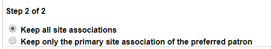 9. If you are a district user with the Manage Patrons for the District permission and the patron records have different or multiple site associations, select whether to keep all the associations, or just the primary association of the preferred record.